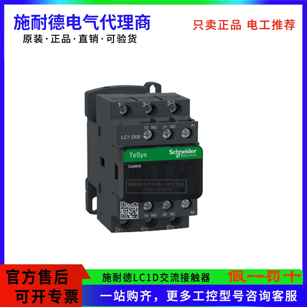 施耐德TeSys Deca接觸器LC1D09M7C,3P, 9A, AC-3 4kW 400V, 1NO+1NC aux contact, 220V 50/60Hz AC coil, 輔助觸點可用于安全回路(鏡像觸點), 認(rèn)證(IEC、CCC、CCS、RoHS、REACH).