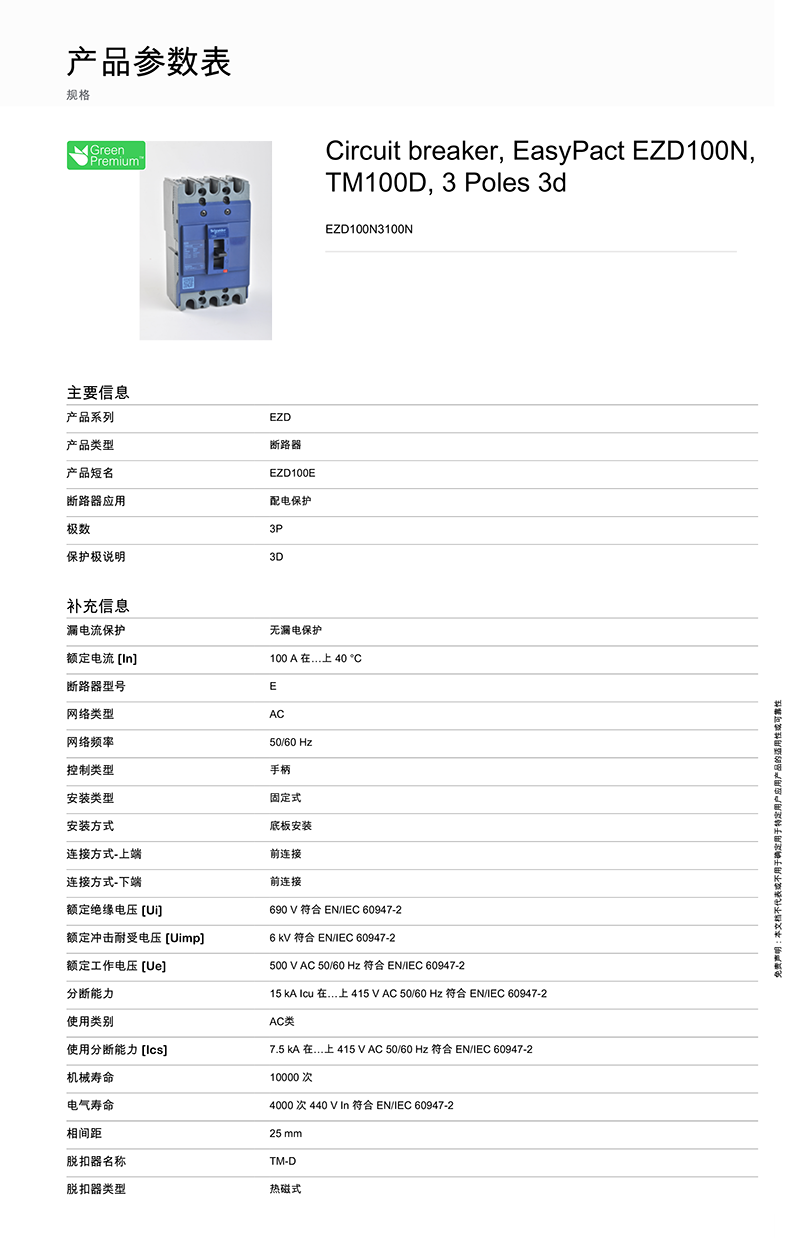 簡介內容:施耐德塑殼斷路器EZD系列配電用固定式斷路器EZD100